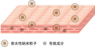 使亲水性纳米粒子饱含美容成分、可以做到迅速渗透深层肌肤角质。